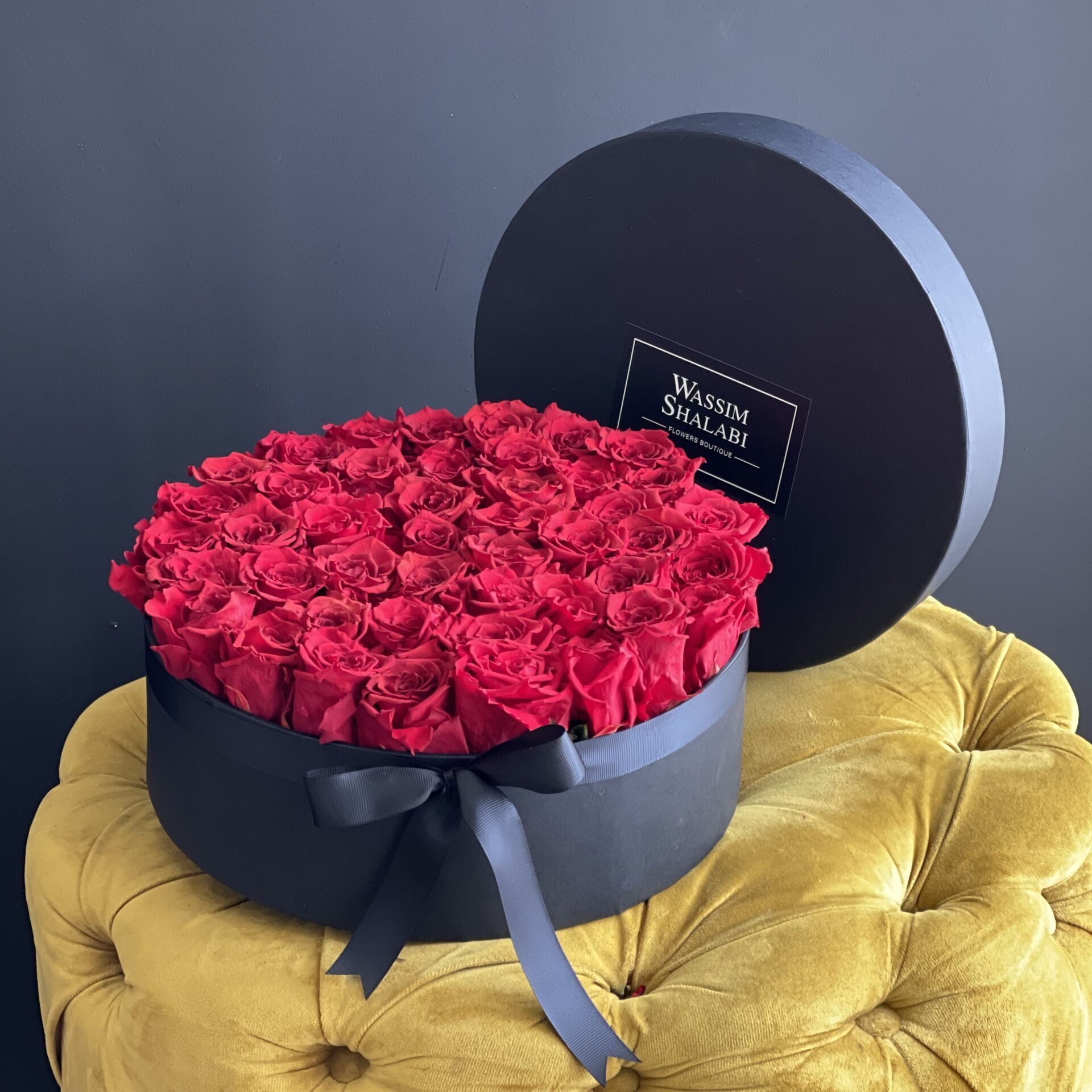 Luxury Red Rose Round Floral Arrangement Looking for the perfect red rose delivery? Our handcrafted round box filled with red roses combines elegance with convenience. Each boutique-quality stem is arranged for maximum impact, making it an ideal gift for Valentine’s Day, birthdays, or romantic surprises.